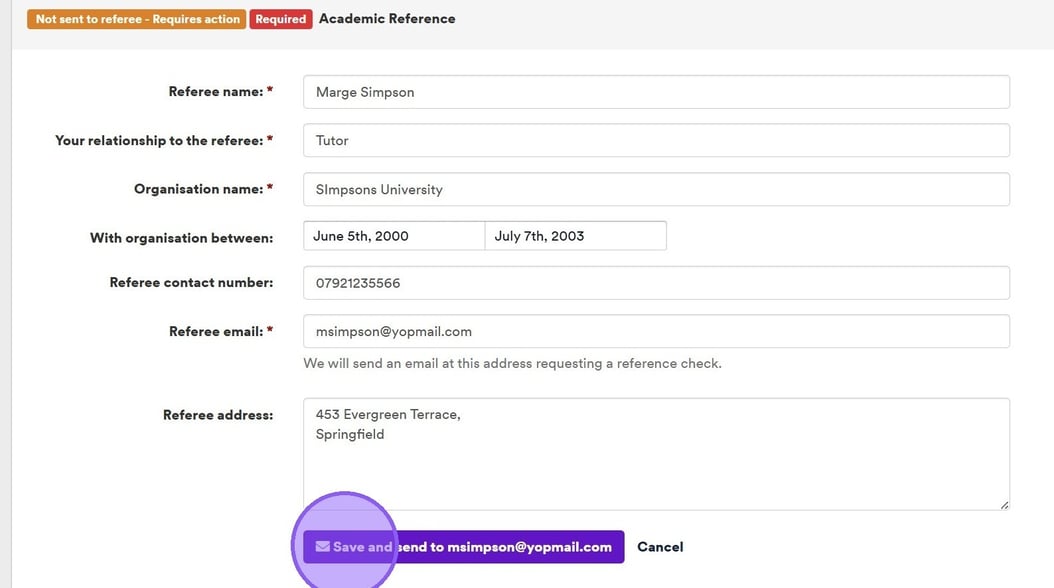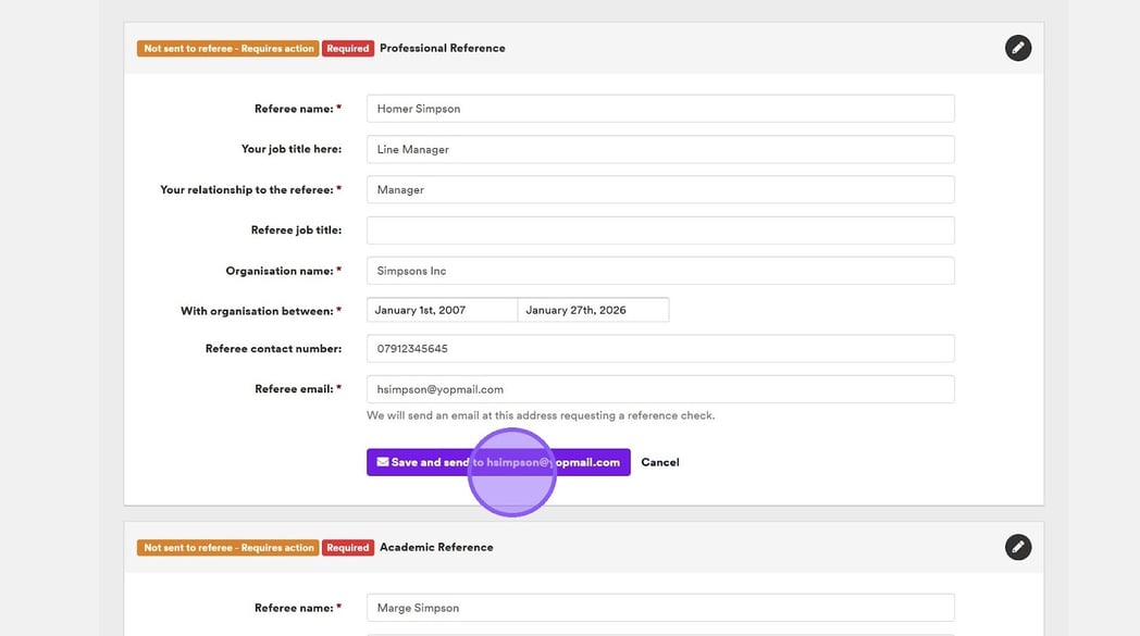 If you have multiple reference checks outstanding, repeat the following step to send to the relevant referee.