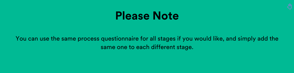 As you can see from this guide we have named our process questionnaires after each stage to make this process easy.
