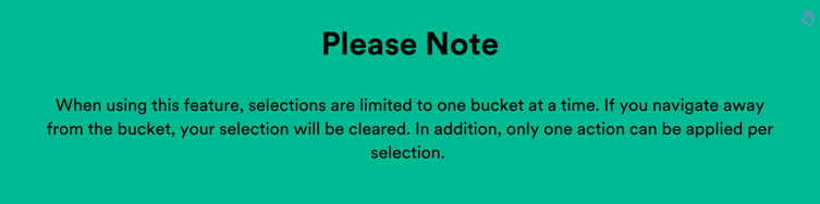 To complete different actions, candidates must be selected and processed separately within their respective buckets.