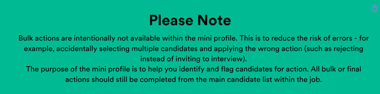 The Mini Profile is a handy way to review a candidate’s application, without needing to enter their main profile.