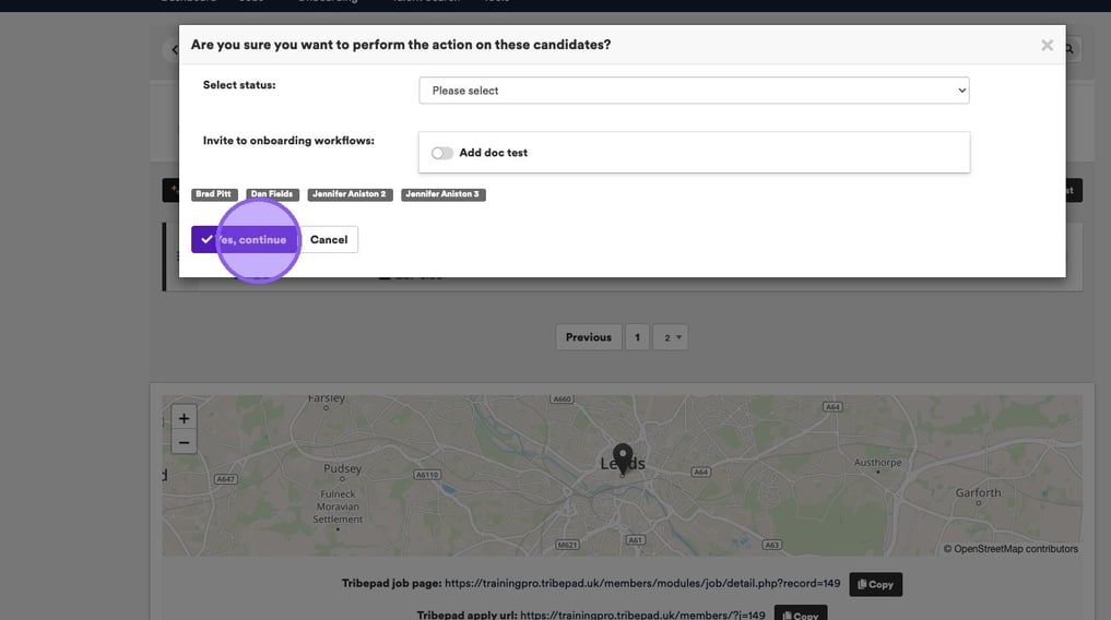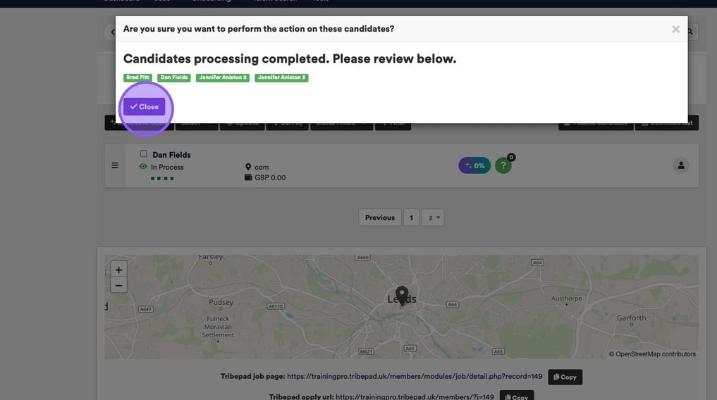 Whilst on the main job page, you will see any "flagged" candidates now have a tick highlighted in the check box next to their name. From here you can choose to take further actions, such as moving them to another bucket.