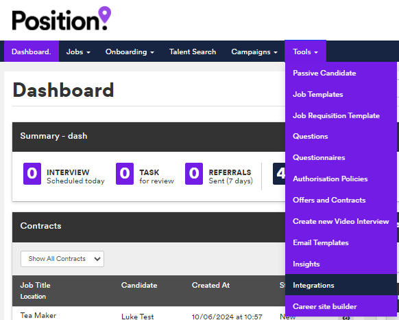 Go to the Jobs or Tools menu and select Integrations. Followed by “create instance” and select “Tribepad Checks”.