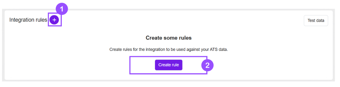 Your final steps are to create “Integration Rules” by clicking on the purple “+” icon or the “Create Rule” button: