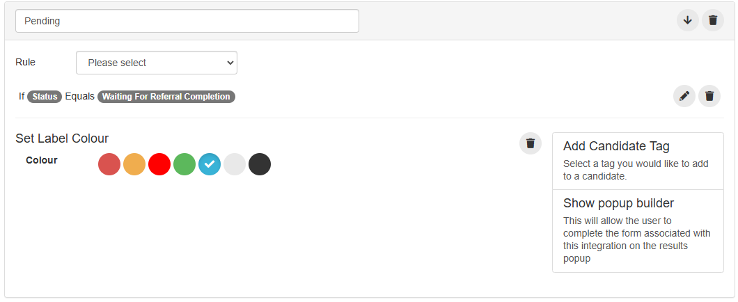 You will then need to add your conditions, for this example we are setting up: “If Status > Equals > Waiting for Referral Completion” followed by “Set Label Colour”.