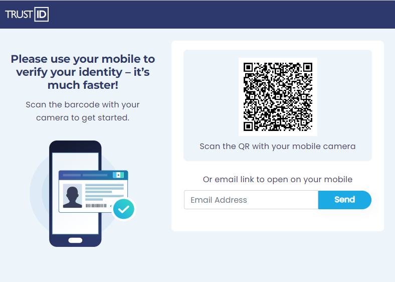 Submission: They will now see a QR code. They must scan this with their mobile phone to open the browser, complete the ID check, and take a selfie.
