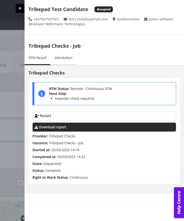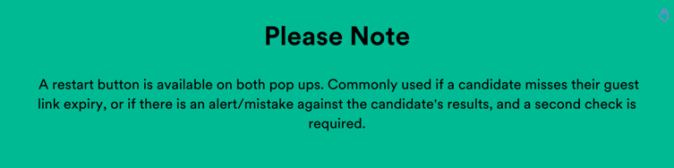 - Restart: Trigger a new check (useful if a candidate misses the deadline or makes an error).