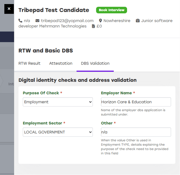 Through this integration, recruiters can raise and manage DBS check requests directly within the Tribepad ATS, removing the need to switch between systems. DBS checks can be requested as a standalone process or combined with a Right to Work + DBS journey, both of which follow the same streamlined workflow.